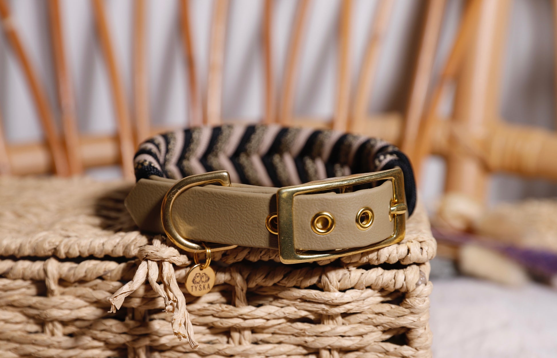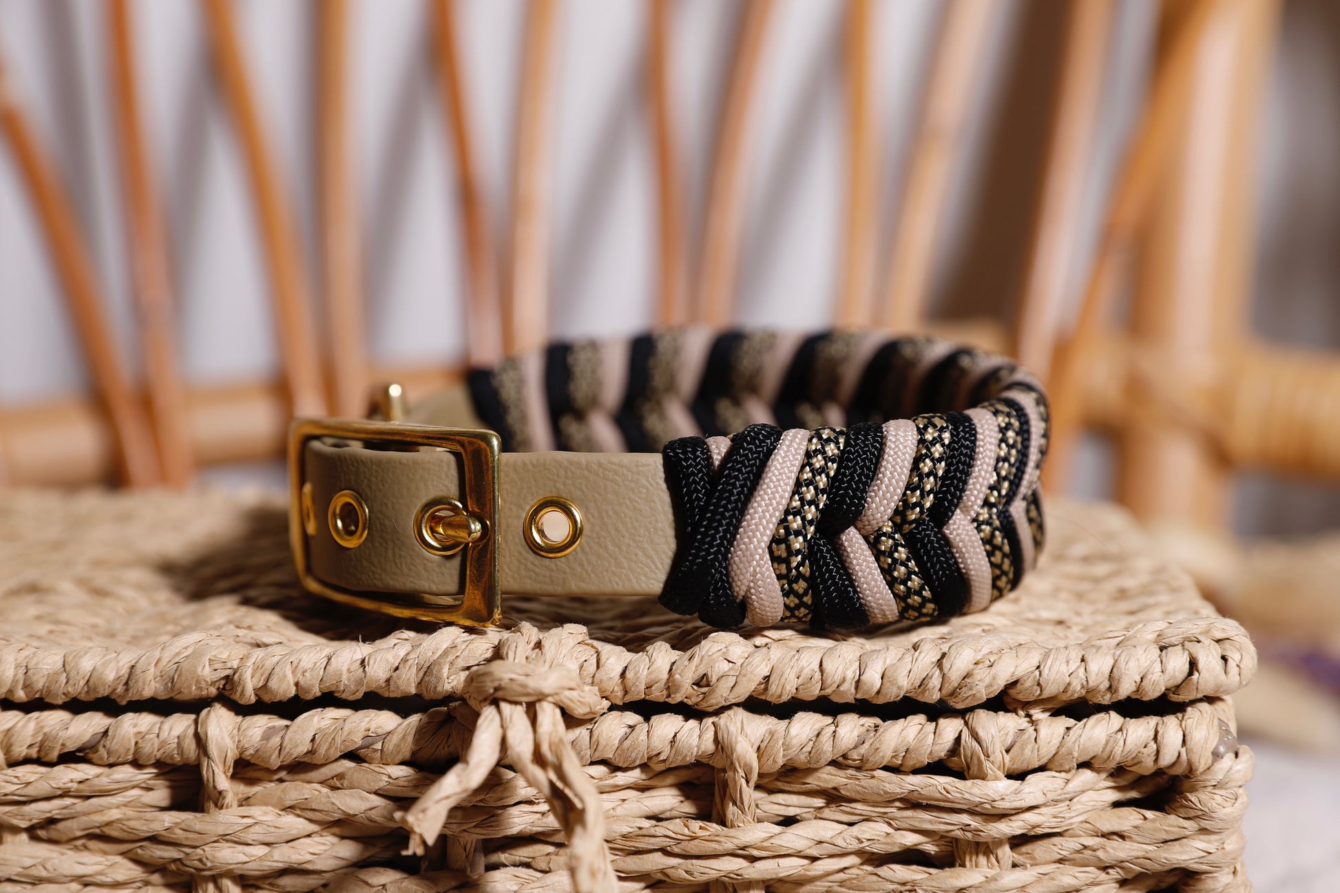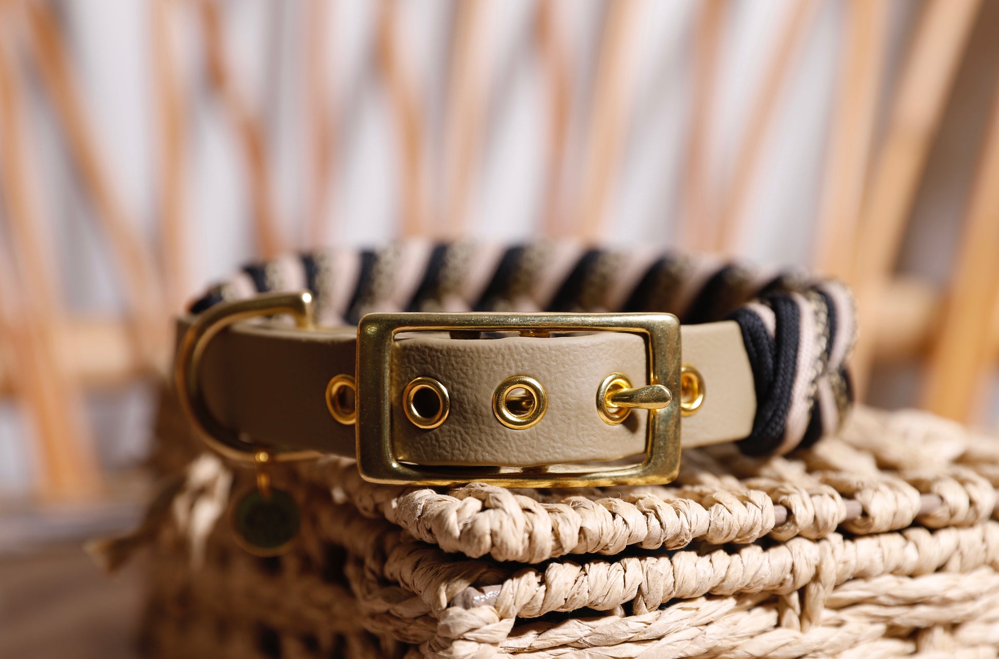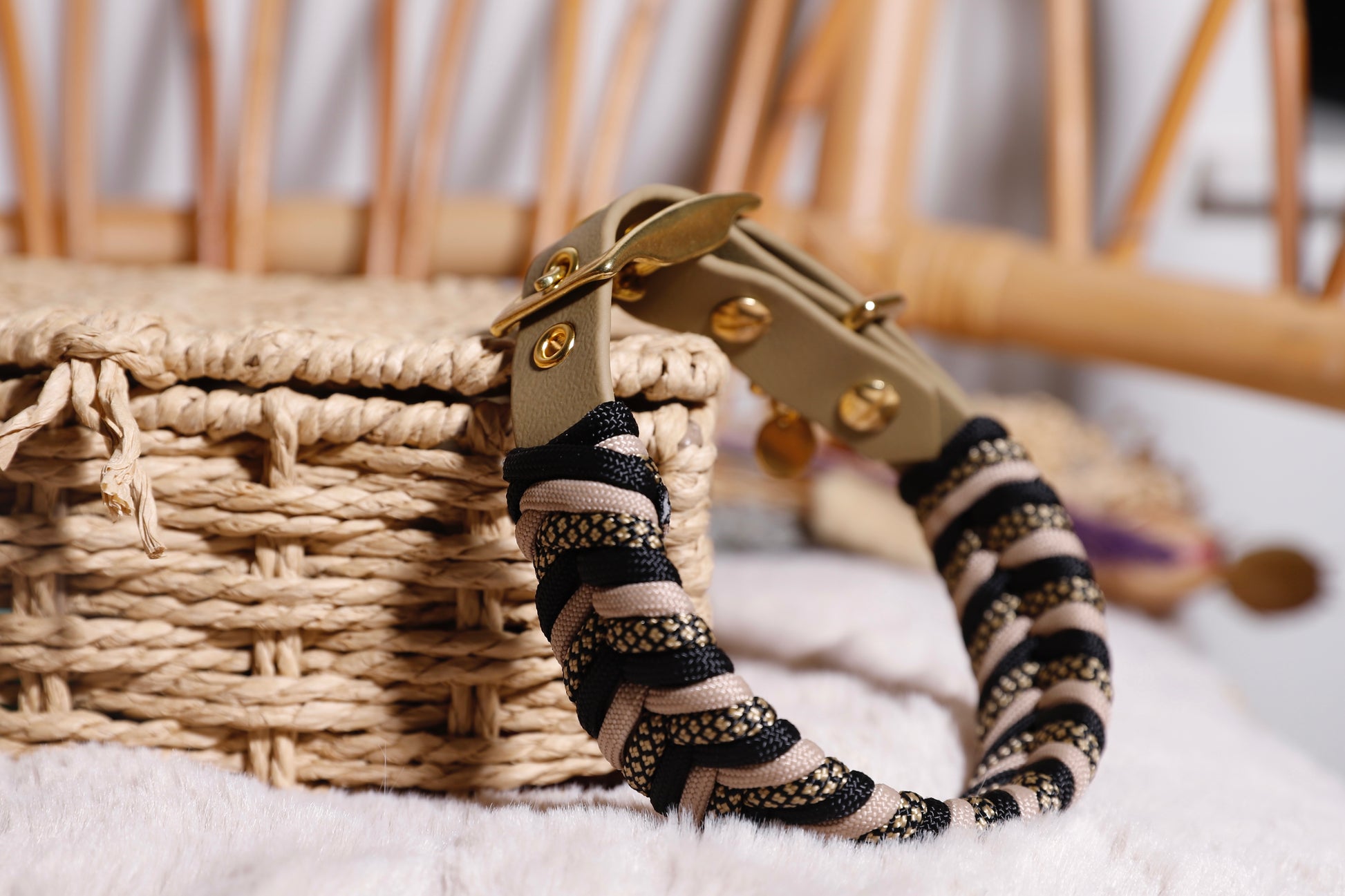 SUR COMMANDE ✨ Ce collier de chez TYSKA en biothane et en paracorde tressé. Les boucles sont en laiton massif, matériau qui résiste à l'eau de mer. Ne rouille pas.
