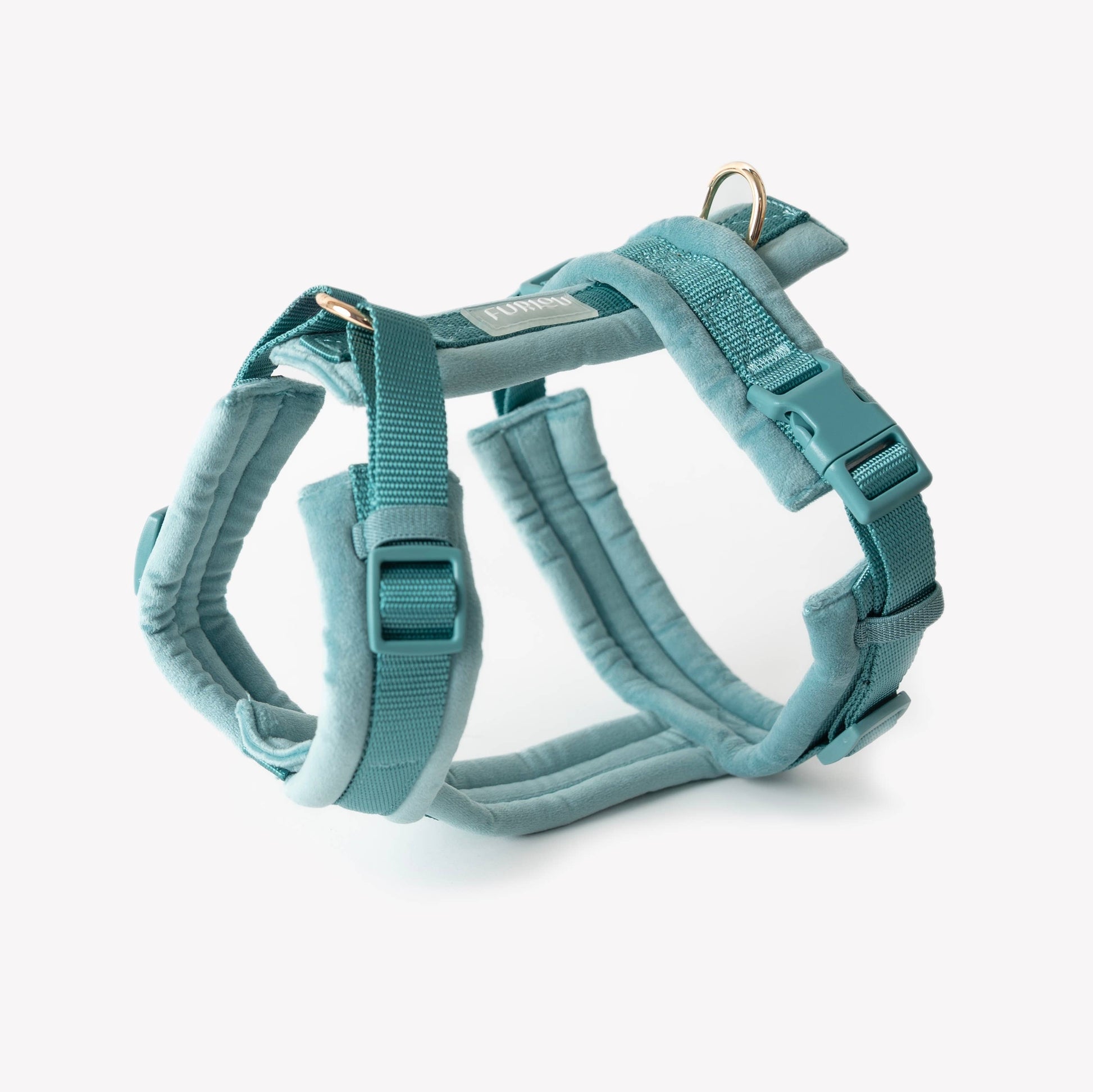 Doux, élégant et conçu pour s'adapter comme un rêve. Ce harnais apporte tout le confort de notre design le plus vendu — maintenant enveloppé de velours somptueux. Avec quatre points d'ajustement et une doublure rembourrée respirante, il est aussi pratique qu'il est joli. Le velours lui donne cet aspect raffiné, tandis que la quincaillerie dorée lie le tout. Promenades confortables, vous voilà.