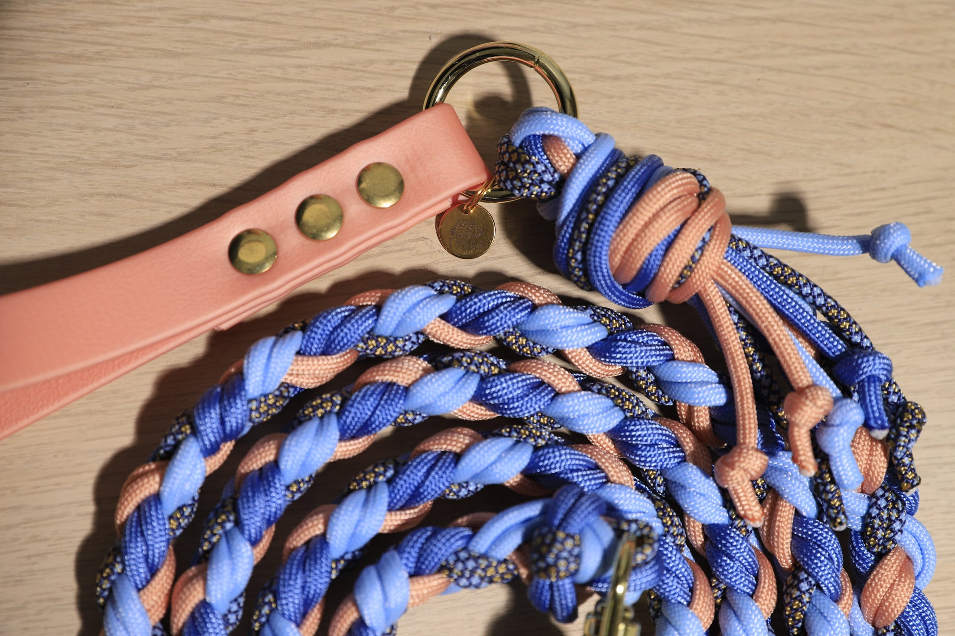 Laisse tressée bleu rosé