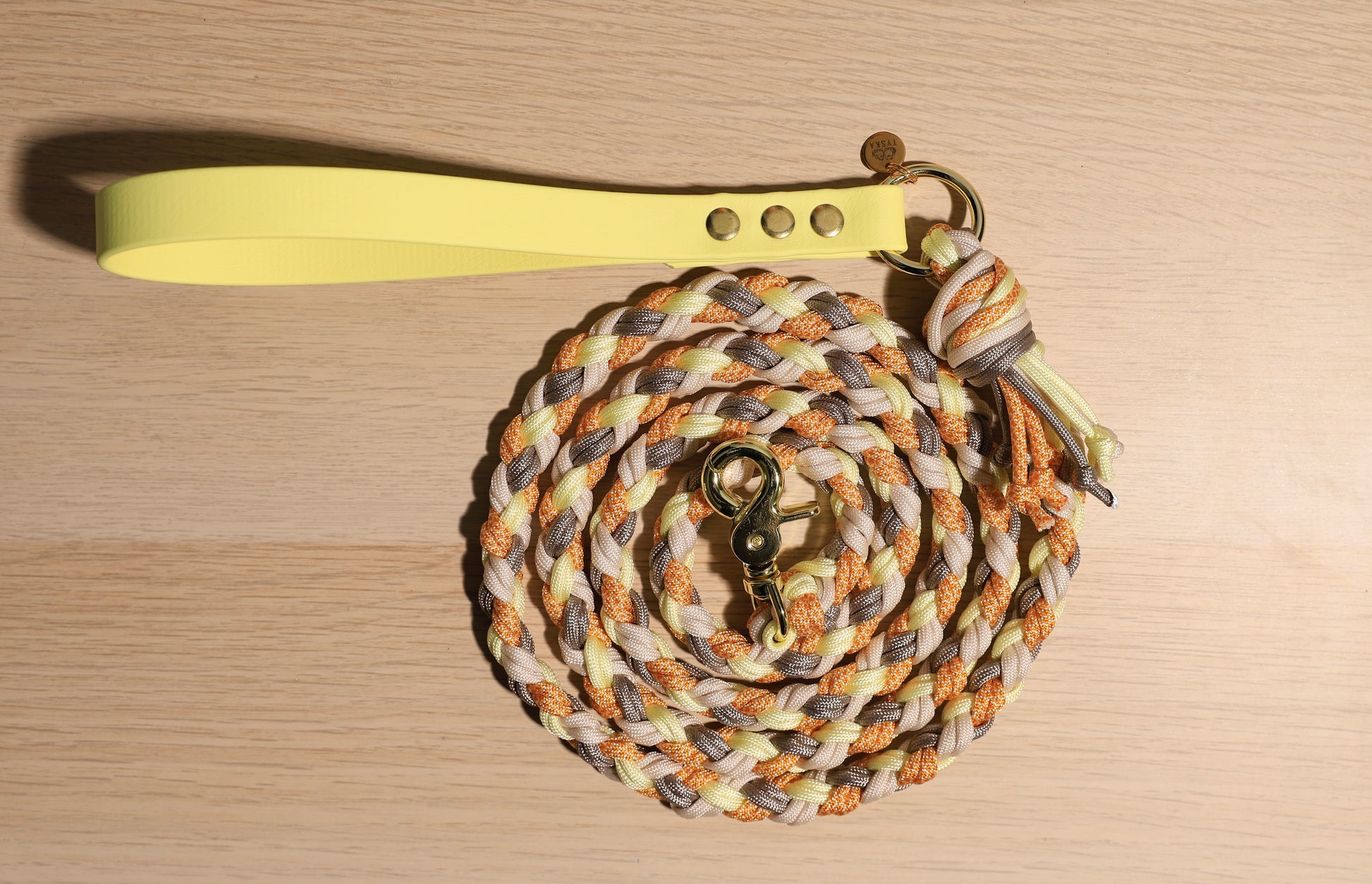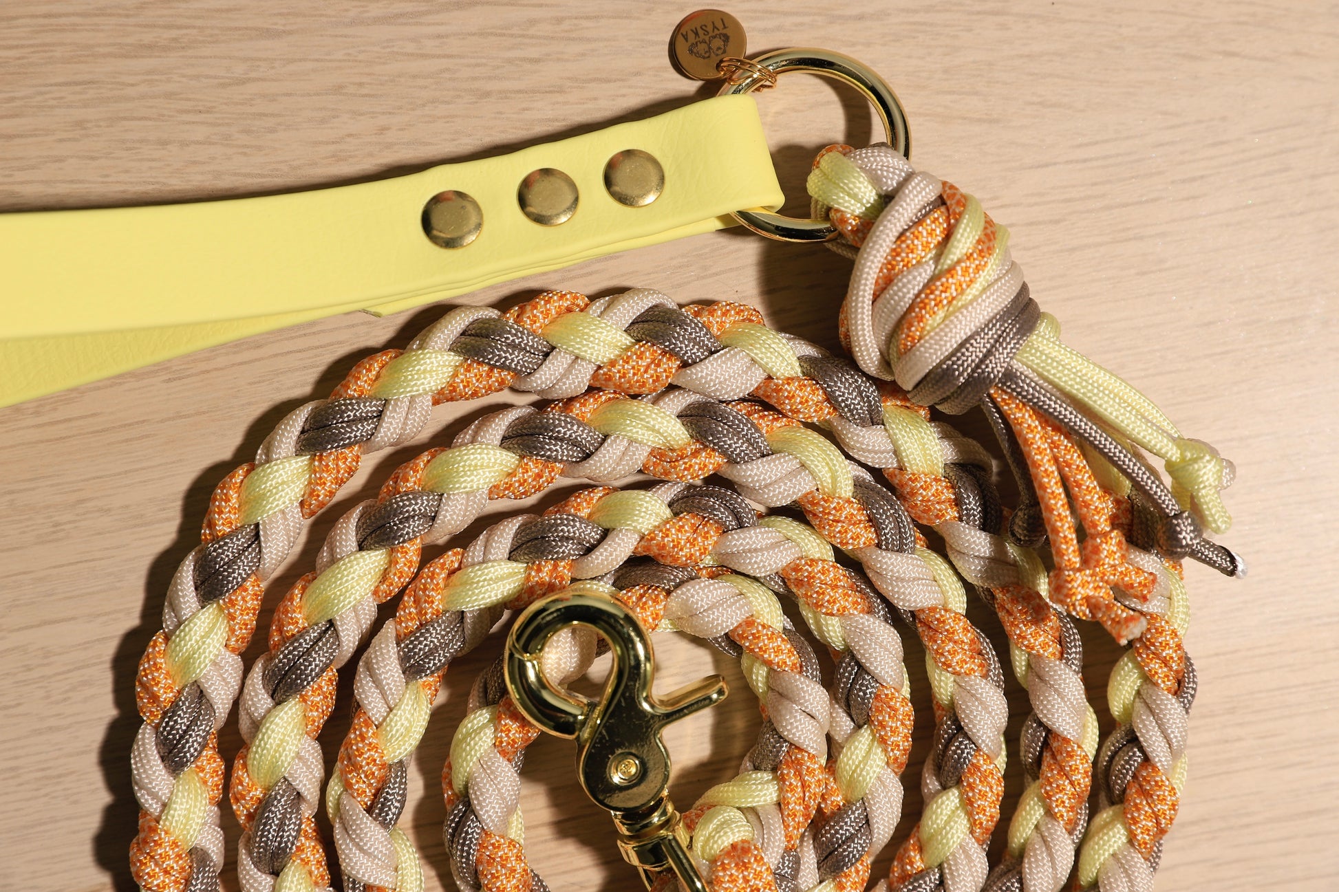 Laisse tressée jaune orangé