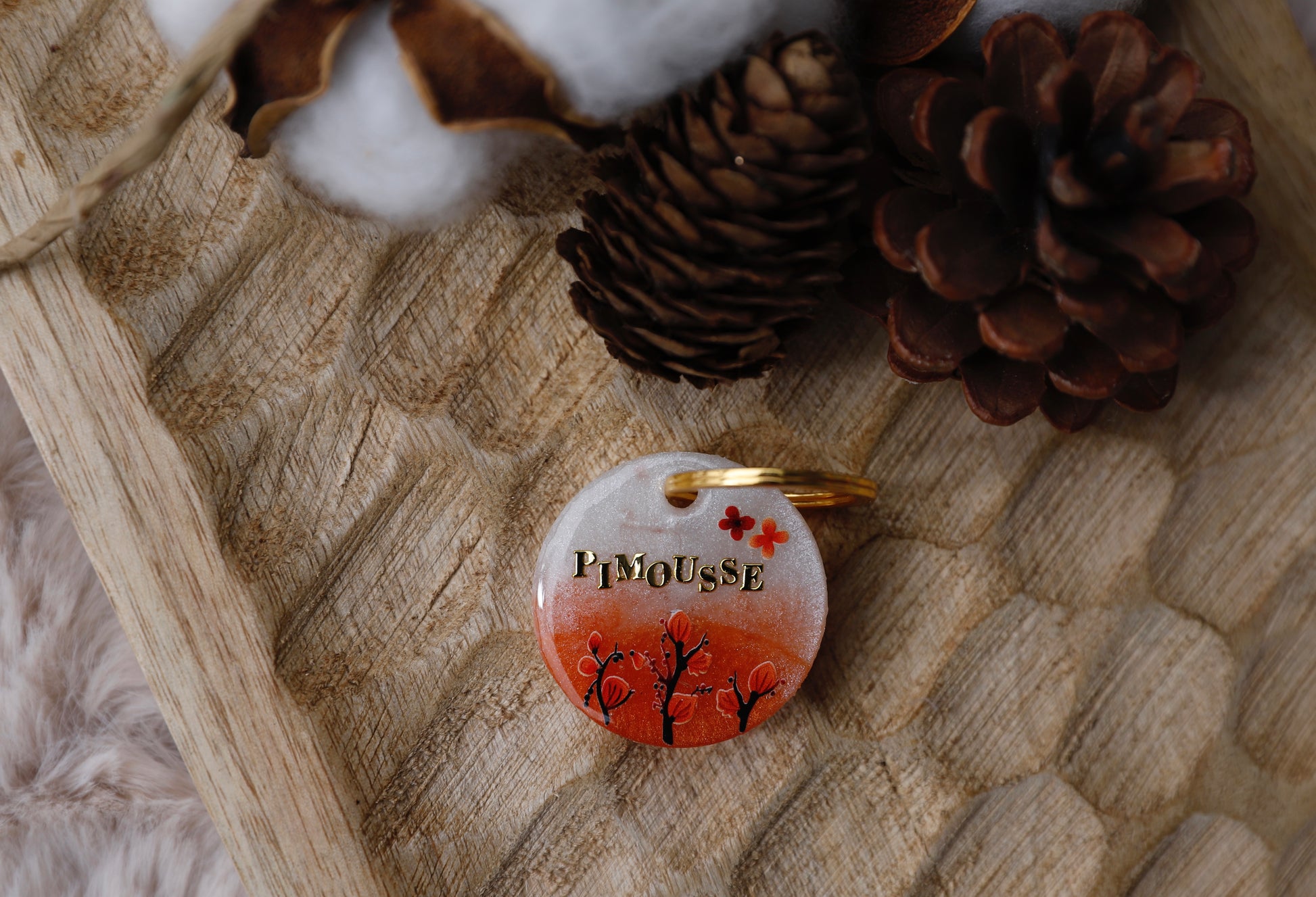 Attache anneau compris (dorée ou argent en fonction de la couleur d'écriture choisie)