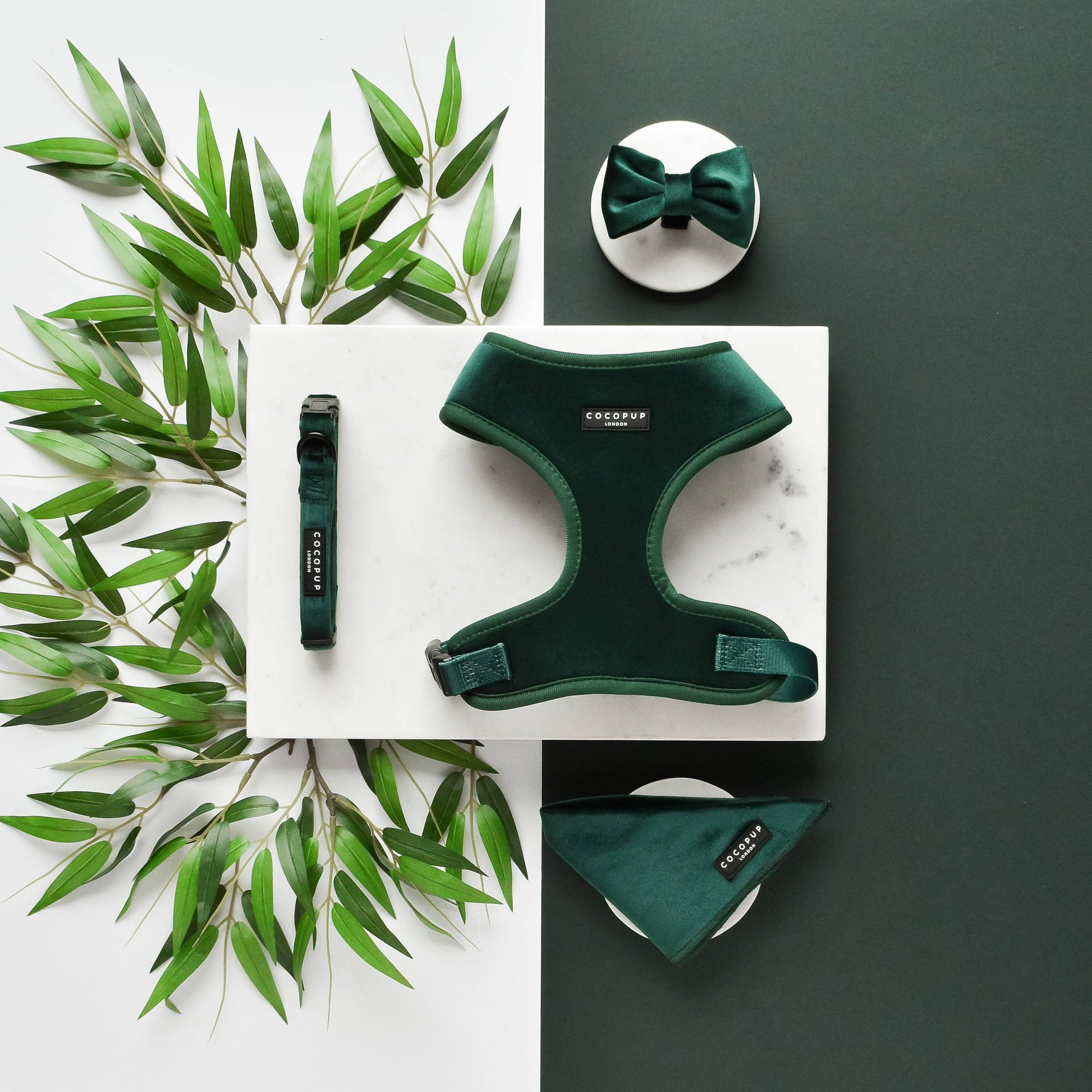Préparez-vous pour les fêtes de fin d'année avec notre nœud papillon en velours vert forêt. Ajoutez une touche de magie festive à vos peignoirs avec cette superbe collection d'anniversaire texturée ! Votre chiot est sur le point de faire parler de lui à chaque soirée.