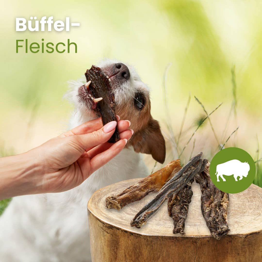 Cette friandise naturelle est composée à 100 % de viande de buffle séchée, totalement sans conservateurs. Grâce à sa haute teneur en protéines et sa faible teneur en matières grasses, cette gourmandise allégée est idéale entre les repas, même pour les chiens soucieux de leur santé ou ayant un estomac sensible. Sa consistance ferme garantit un plaisir de mastication moyen à long terme, satisfaisant l’instinct de mastication tout en renforçant les muscles de la mâchoire. La viande de buffle est non seulement savoureuse, mais aussi une source naturelle de protéines que les chiens adorent. Un encas agréable – sans additifs artificiels. Caractéristiques : - Longueur : 13-15 cm - Poids (par pièce) : 20-25 g - Odeur : légère à moyenne - Teneur en matières grasses : faible - Texture : dure - Plaisir de mastication : long Composition : 100 % viande de buffle Analyse analytique : - Protéines brutes : 78,20 % - Humidité : 10,00 % - Matières grasses brutes : 5,00 % - Cendres brutes : 2,67 % - Fibres brutes : 2,00 %